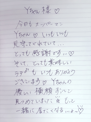 Yちゃん、今日もロングコースありがとうございます。! 2人で帰るときには、いつも幸せだなぁって思います! またスーパーヒーローYちゃん楽しみに待ってます(^^)